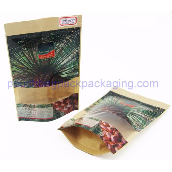 Kraft paper bag, stand up pouch with window and zip lock for food